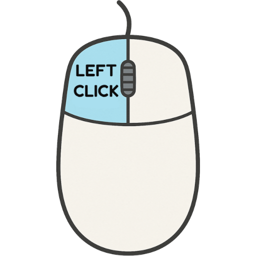 Here’s a picture to help you see which part of the mouse to press. Look at your mouse and see if you can see the Left Click button.
